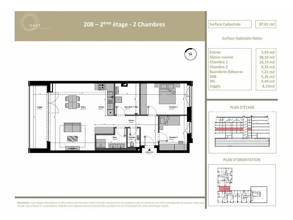 Apartment Lot 2.08.D.2CH is located on the 2nd floor and has a cadastral area of ±87.81m², a loggia of ±8.02m² and is composed as follows: