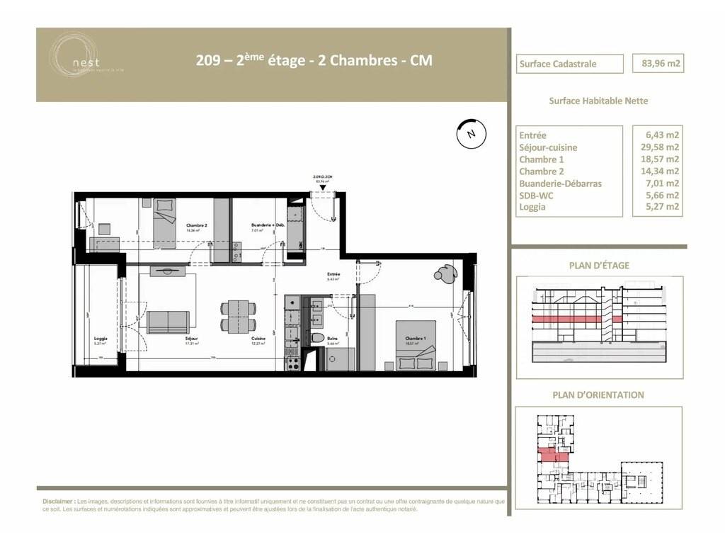 Apartment Lot 2.09.D.2CH is located on the 2nd floor and has a cadastral area of ±83.96m², a loggia of ±5.22m² and is composed as follows: