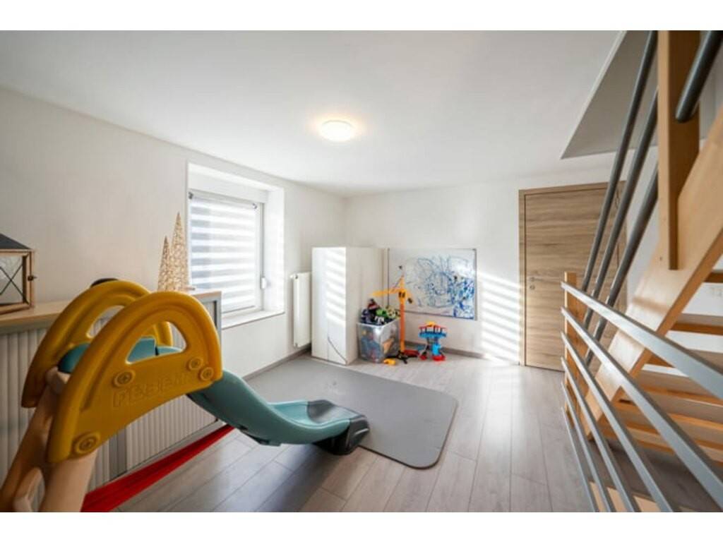 Le rez-de-chaussée se compose d’un vaste salon lumineux, offrant un espace de vie convivial et confortable, ainsi que d’une cuisine équipée, fonctionnelle et bien agencée. L’ensemble crée une atmosphère chaleureuse et agréable au quotidien. À l’étage, la maison dispose de trois belles chambres de bonnes dimensions, ainsi que d’une grande salle de bain moderne, équipée à la fois d’une baignoire et d’une douche, répondant aux standards de confort actuels.