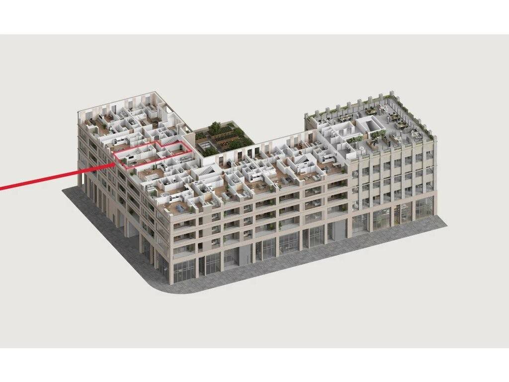 The AAA energy-class building will feature high-performance frames and glazing, a new-generation solar panel roof, an urban farm, and a rainwater recycling system.