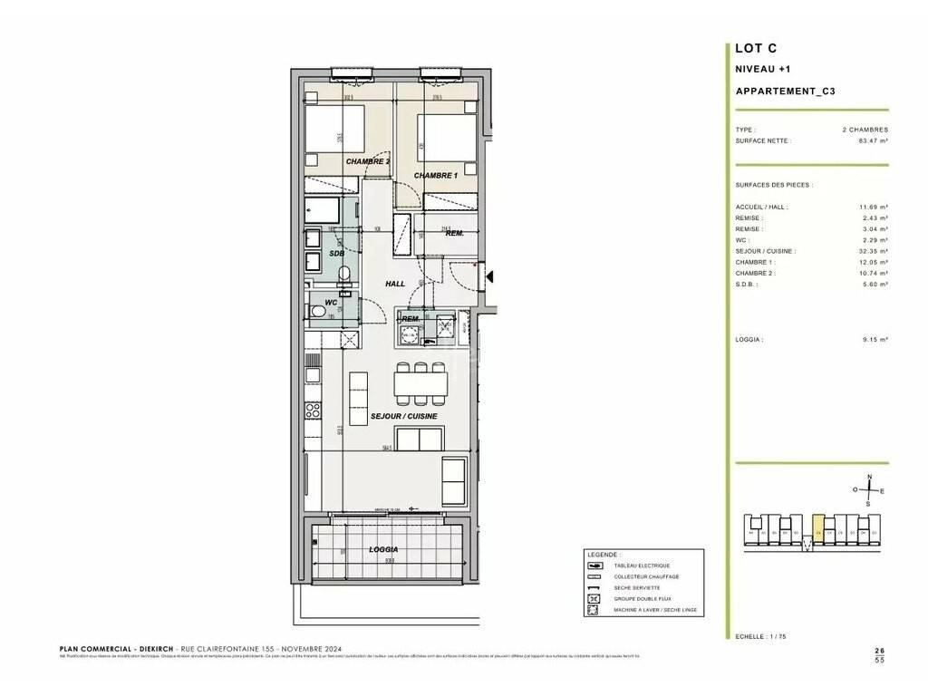 -séjour/cuisine ( 32,35 m2)avec accès loggia (9,15 m2)