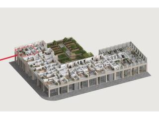The AAA energy class building will be equipped with high-performance frames and glazing, a new generation solar panel roof, an urban farm, and a rainwater recycling system.