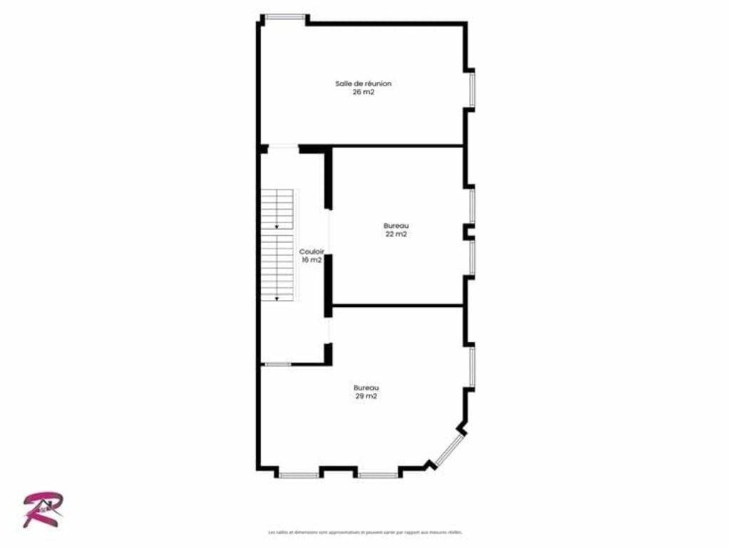 Au premier étage : Un hall d'entrée de 14m², 3 bureaux (25m², 22m², 22m²) ;