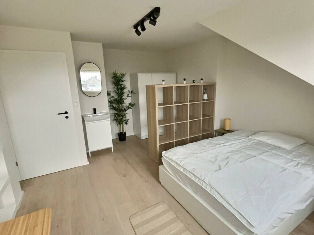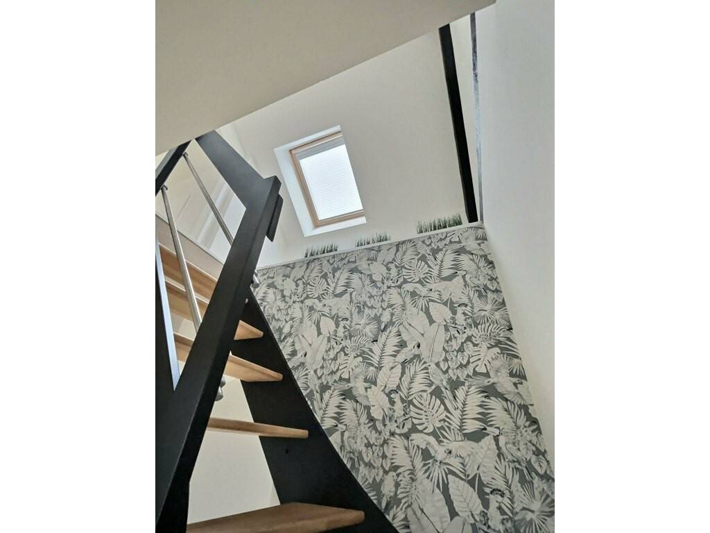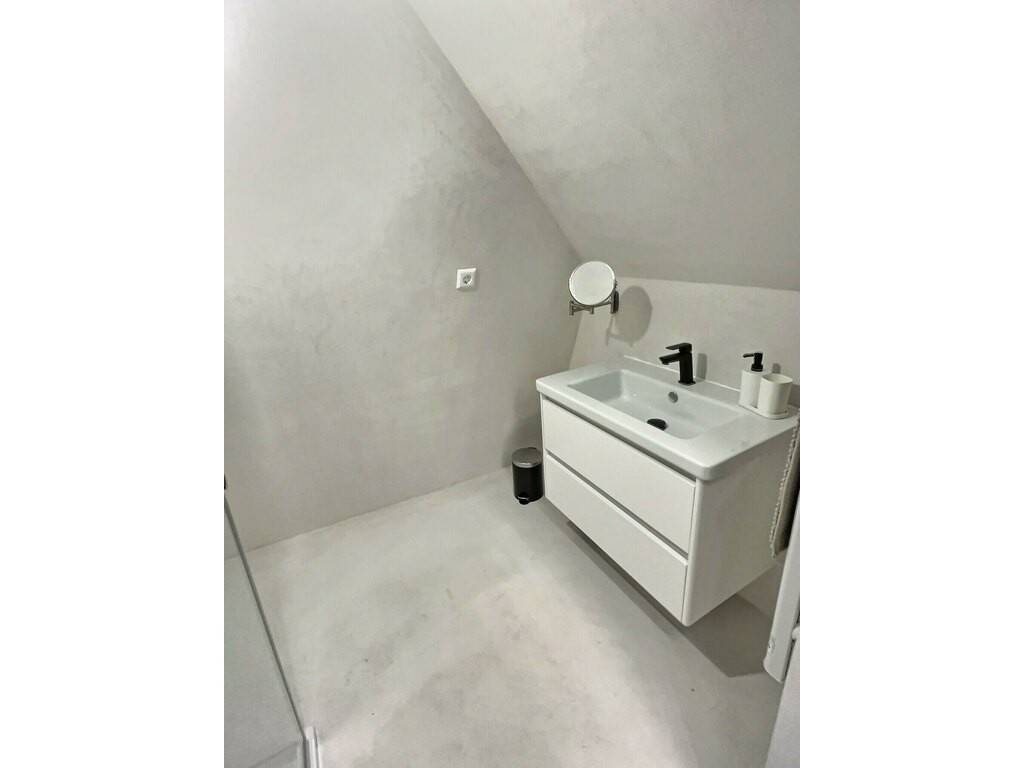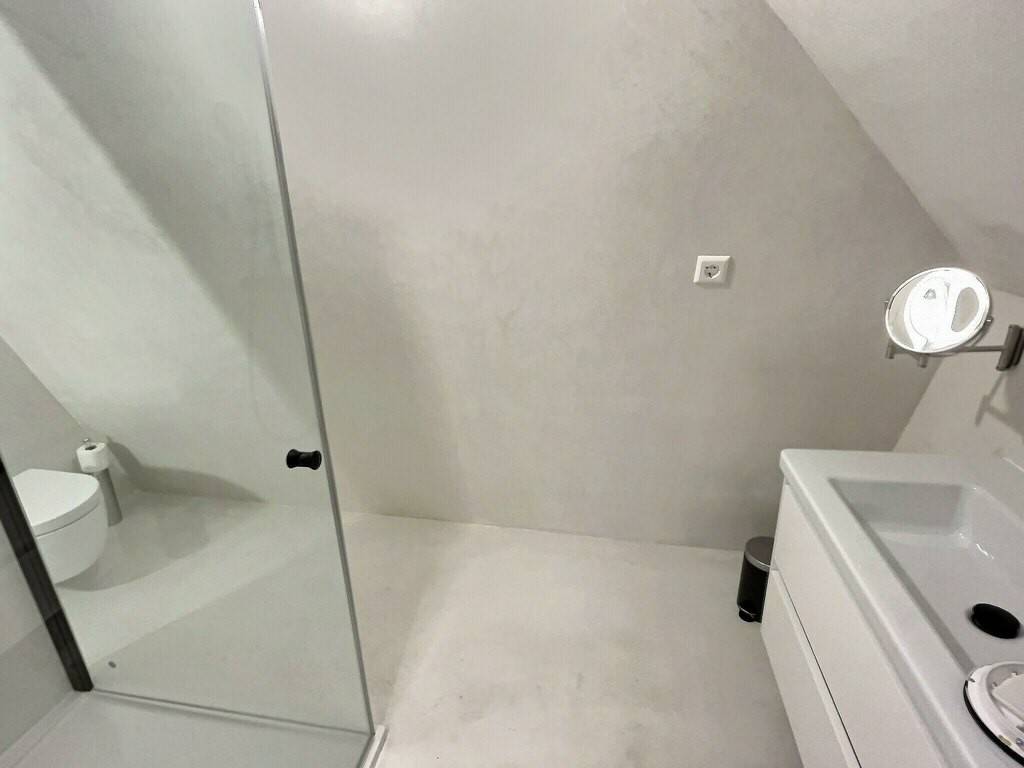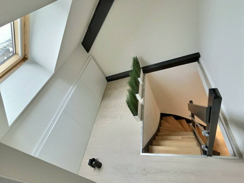 On the 2nd level : - a design staircase leads to this second level - a third bedroom (+/-31m2, on the floor) with lots of custom made storage space - a shower room with sink and toilet.