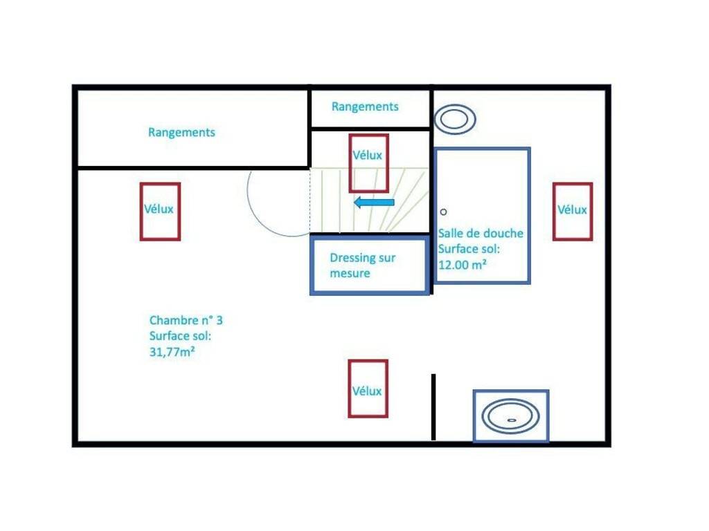 - Room n°1 - 18m2 (first level) - AVAILABLE - Room n°2 - 16m2 (first level) - Rented - Room n°3 - 10m2 (attic on the second level 31m2 on the ground) with personal bathroom - Rented