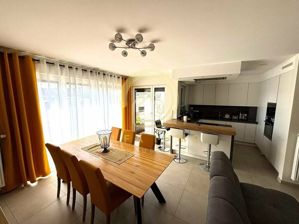 - Entrance hall. - Large living and dining room with access to the south-west-facing terrace. - Beautiful fitted kitchen opening onto the dining room. - Italian-style shower room. - Separate WC. - 2 bedrooms. - Private cellar of approx. 5 m² and shared laundry room. - Indoor parking for one car.