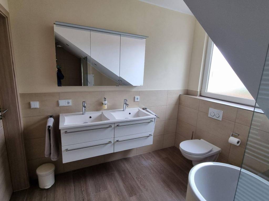 Diese lichtdurchflutete, helle Doppelhaushälfte wurde 2025 aufwändig modernisiert und ist sofort bezugsfertig. Das Haus präsentiert hohen Wohnkomfort mit 2 Tageslichtbädern plus zusätzlichem Gäste-WC, 5 Schlafzimmern, Wohn-Ess-Bereich mit offenem Zugang zur neuen massangefertigten Einbauküche mit hochwertigen Elektro-Einbaugeräten sowie einen möblierten Hauswirtschaftsraum mit Anschlüssen für Waschmaschine und Wäschetrockner.