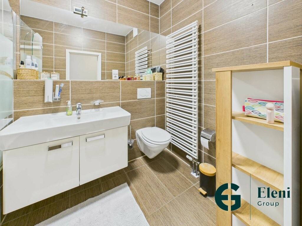 The well-appointed living area seamlessly connects to the dining space, creating an inviting atmosphere for entertaining guests or enjoying family meals. The kitchen, equipped with modern fixtures, makes meal preparation a delight, combining functionality with design elegance. This thoughtful layout ensures that every square meter is utilized efficiently.