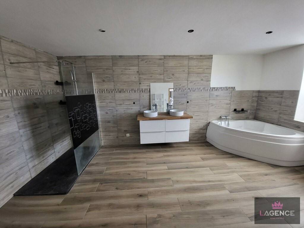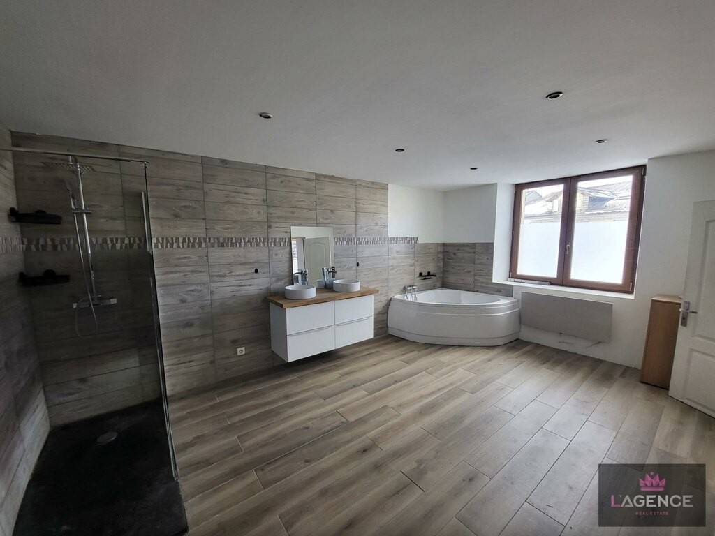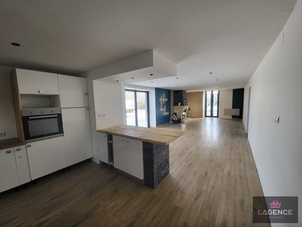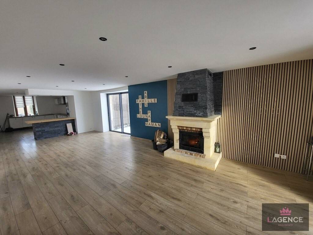 L'entrée dessert à notre gauche une pièce de vie ouverte de 57 m2 avec cuisine, salon-séjour, pièce possédant 2 accès extérieur ainsi qu'une cheminée à bois. A droite de l'entrée, une grande salle de bain de 19 m2 vous attend avec douche et baignoire d'angle. En continuant sur ce RDC, un premier grand toilette et une première chambre de 13 m2 avec accès extérieur et une seconde pièce à la suite de 4 m2 sont disponibles.