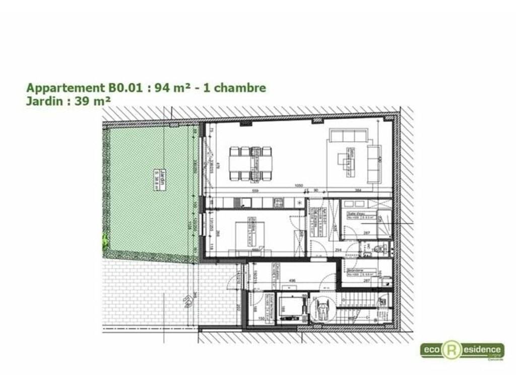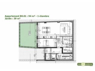 Appartement de 94 m², avec jardin privatif de 39 m² donnant sur le jardin intérieur.