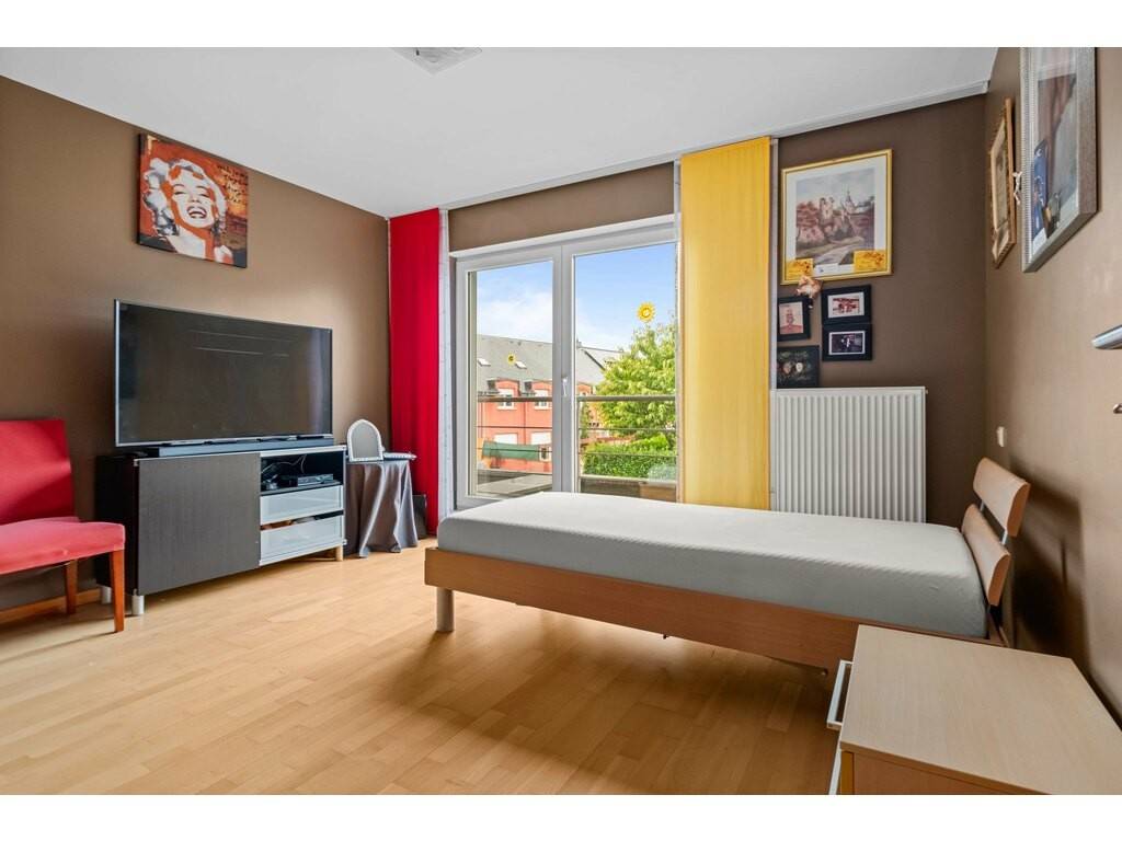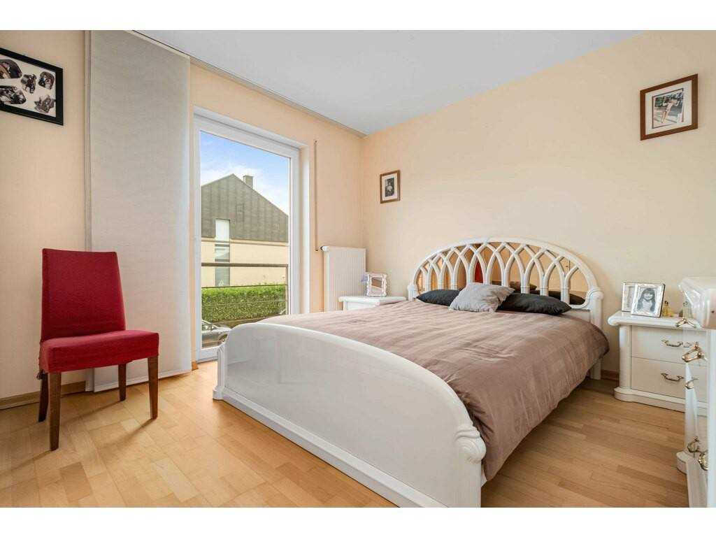 The landing leads to two comfortable bedrooms of ±14 m² and a master suite of ±16 m², featuring a custom-made walk-in dressing room of ±11 m² and a private bathroom of ±8 m² with a shower cabin and hammam function.
