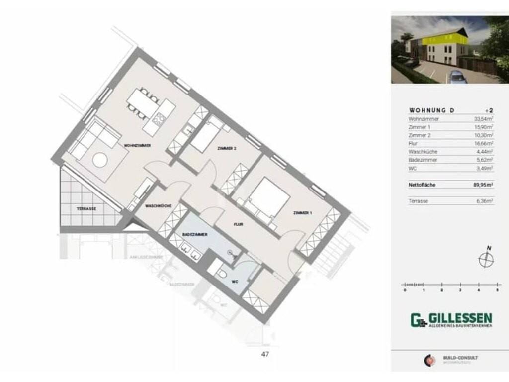 L'appartement D.2 se trouve au deuxième étage et a une surface habitable de 86,04 m².