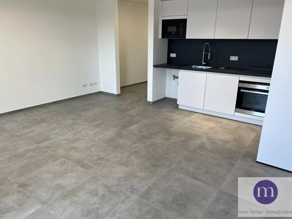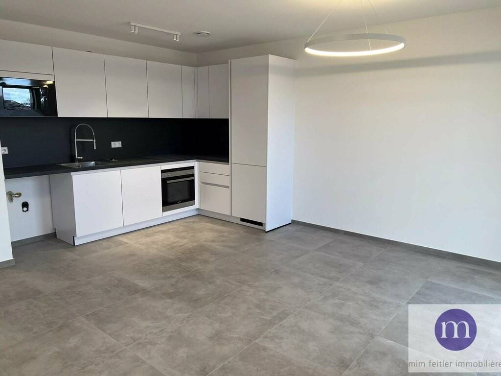Studio de 38 m2 sis au 1er étage dans nouvelle résidence et comprenant: living avec balcon et cuisine équipée ouverte, salle de douche avec WC, hall d'entrée, cave et un emplacement intérieur.