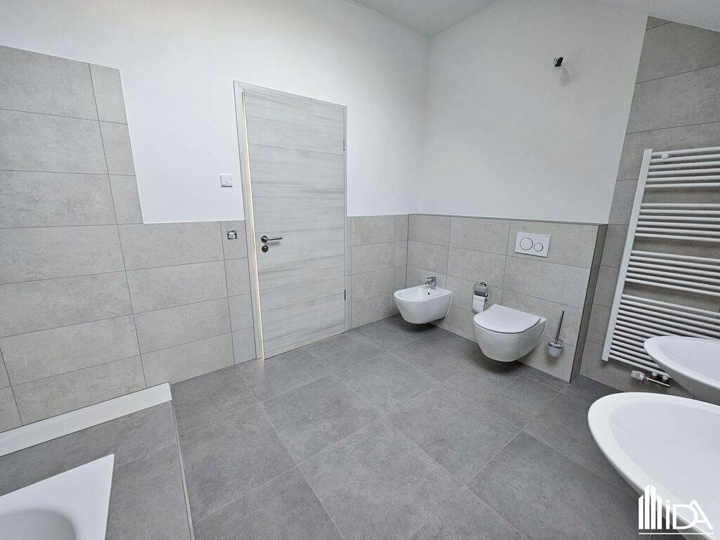 1er étage: - hall de nuit - 1 chambre à coucher de +/- 30 m² avec possibilité de séparation pour une 2ème chambre - salle de bain avec douche, 2 lavabos, wc, bidet - 1 suite parentale de +/- 15 m² avec salle de douche, double lavabo, wc, bidet - buanderie.