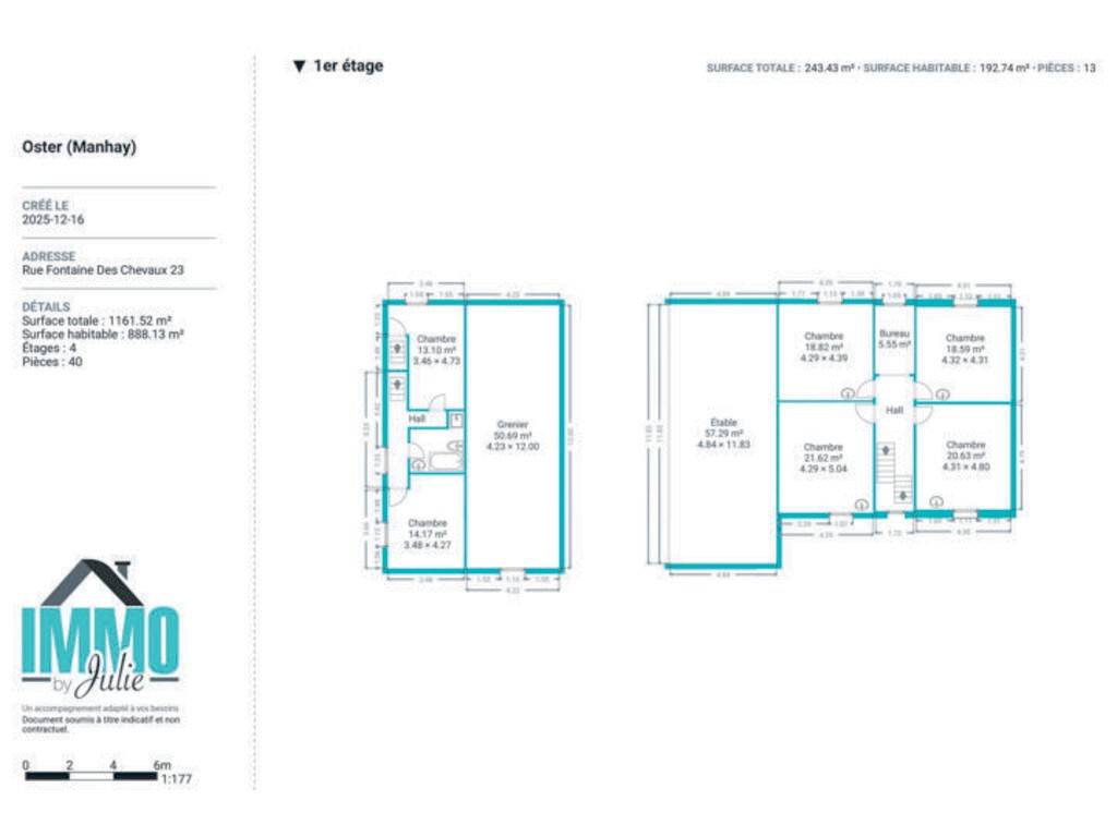Les greniers aménageables de chaque partie permettent la création de chambres ou espaces supplémentaires.