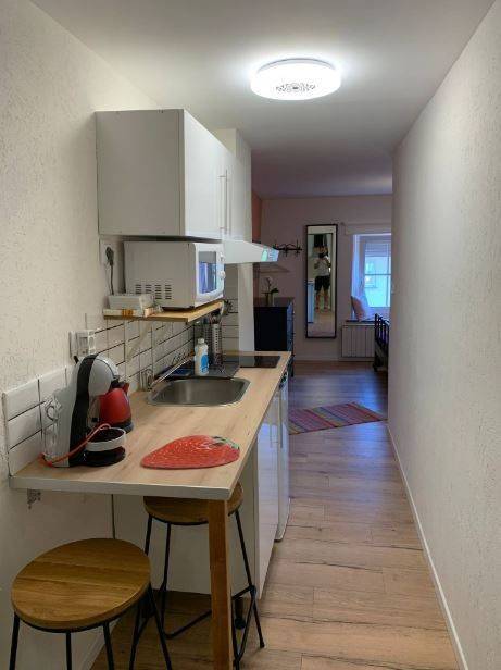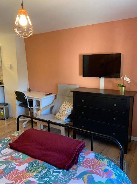 - Rental cost per month: 1100 EUR + fixed charges 200 EUR which include: electricity, heating, water and internet - Kitchenette, bathroom, bedroom/living room, a desk/table to work from home - Studio is fully furnished (table, bed, fridge, crockery, cutlery, bed linen, towels...2 washing machine/dryer in a laundry room, shared with 4 other tenants) - 2000 EUR deposit - No agency fee - Minimum stay = 2 Months - Notice period to terminate the lease: 2 months - For 1 person. No smoking inside.