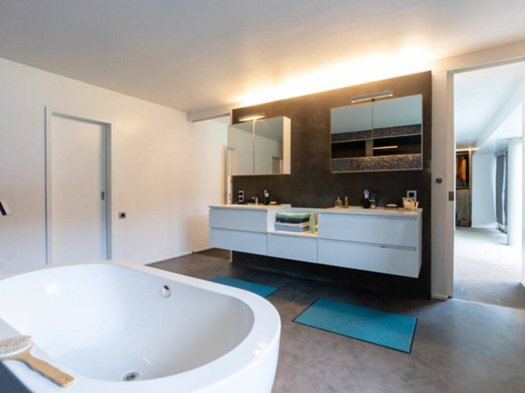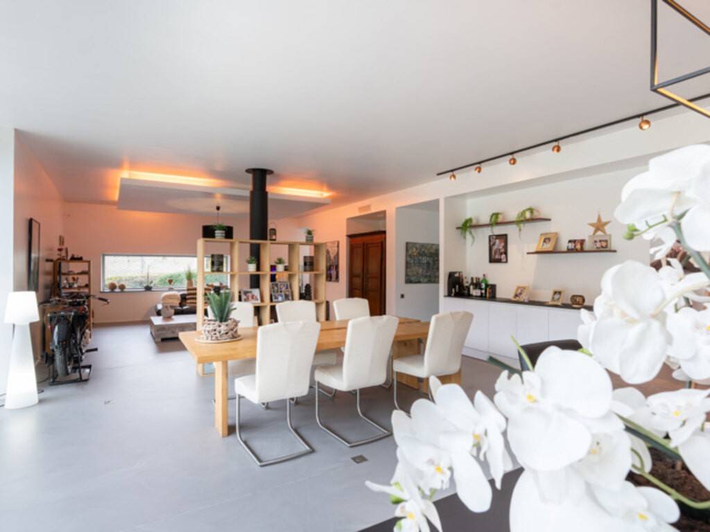 La partie habitation (±240 m²) séduit par ses volumes majestueux : un séjour de 68 m² baigné de lumière grâce à ses baies vitrées toute hauteur avec vue sur le jardin, ainsi qu’une cuisine ouverte neuve et design. À l’étage : une suite parentale avec double dressing, une salle de bain et lingerie, deux chambres, un bureau et une salle de douche.