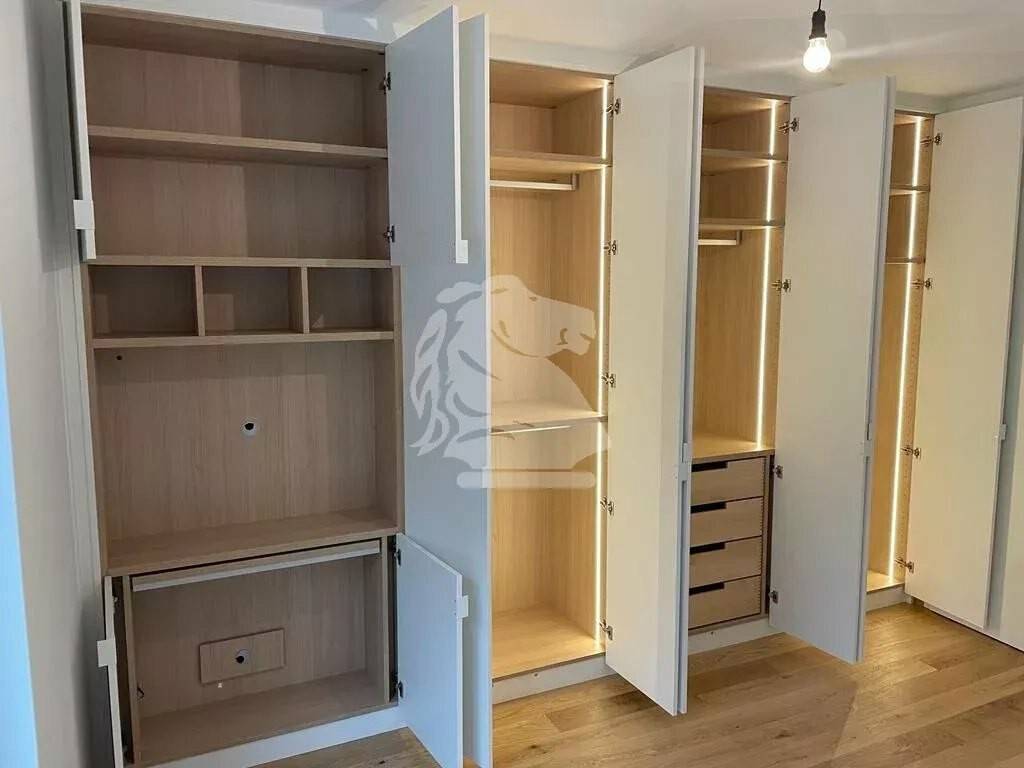 Hall with Cloak-cupboard Fully equipped Kitchen with a diners extension Living area with made to measure wall-cupboards. The Living room leads to a large terrace with a view on the park. Toilet separate from the large shower room. There is a dressing between the shower room and the Bedroom. The Bedroom has two made to measure fitted closets. The room also has a large terrace overlooking the garden and a park.