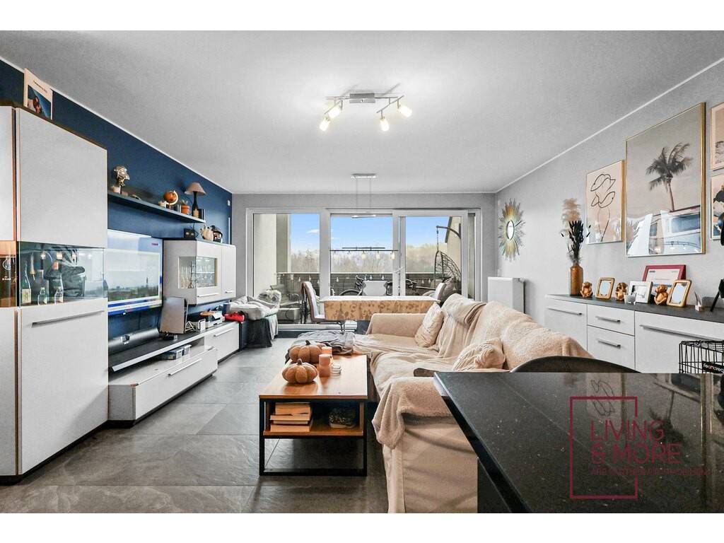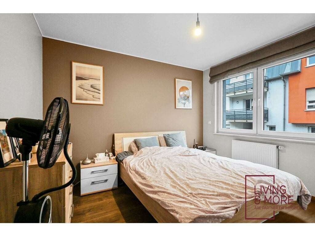This apartment in Bissen offers 80 m² of living space, featuring a spacious living area with an open-plan kitchen, two bedrooms, and a generous balcony.
