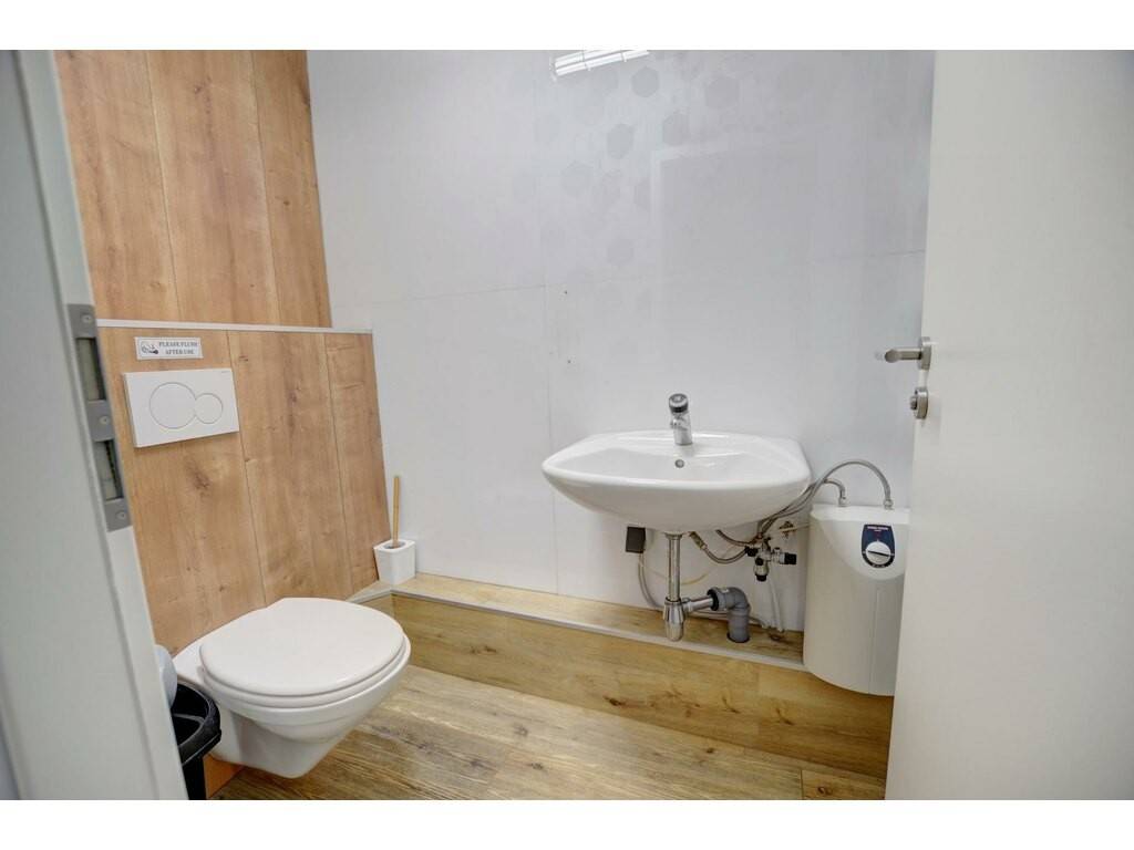 Deux batteries de sanitaires sont disponibles, à l'avant et à l'arrière, comprenant des toilettes séparées pour hommes et femmes ainsi qu'une toilette dédiée au personnel.