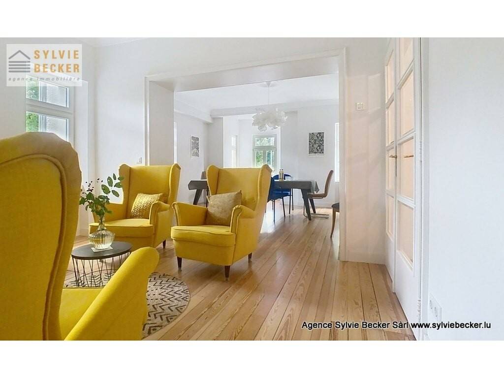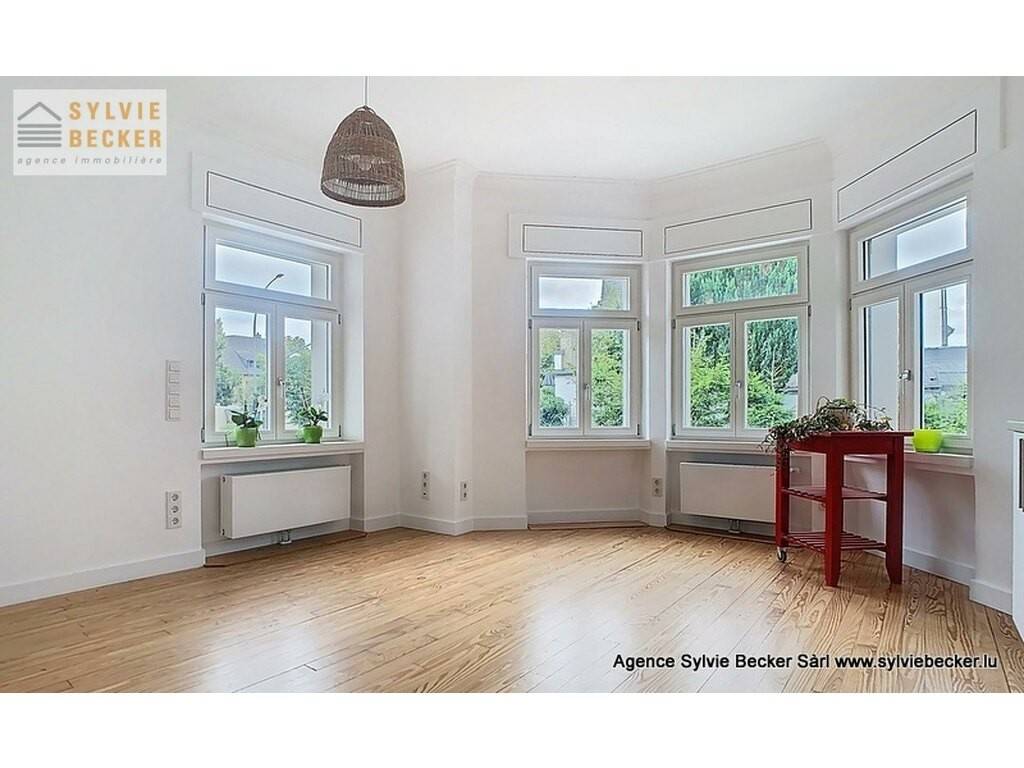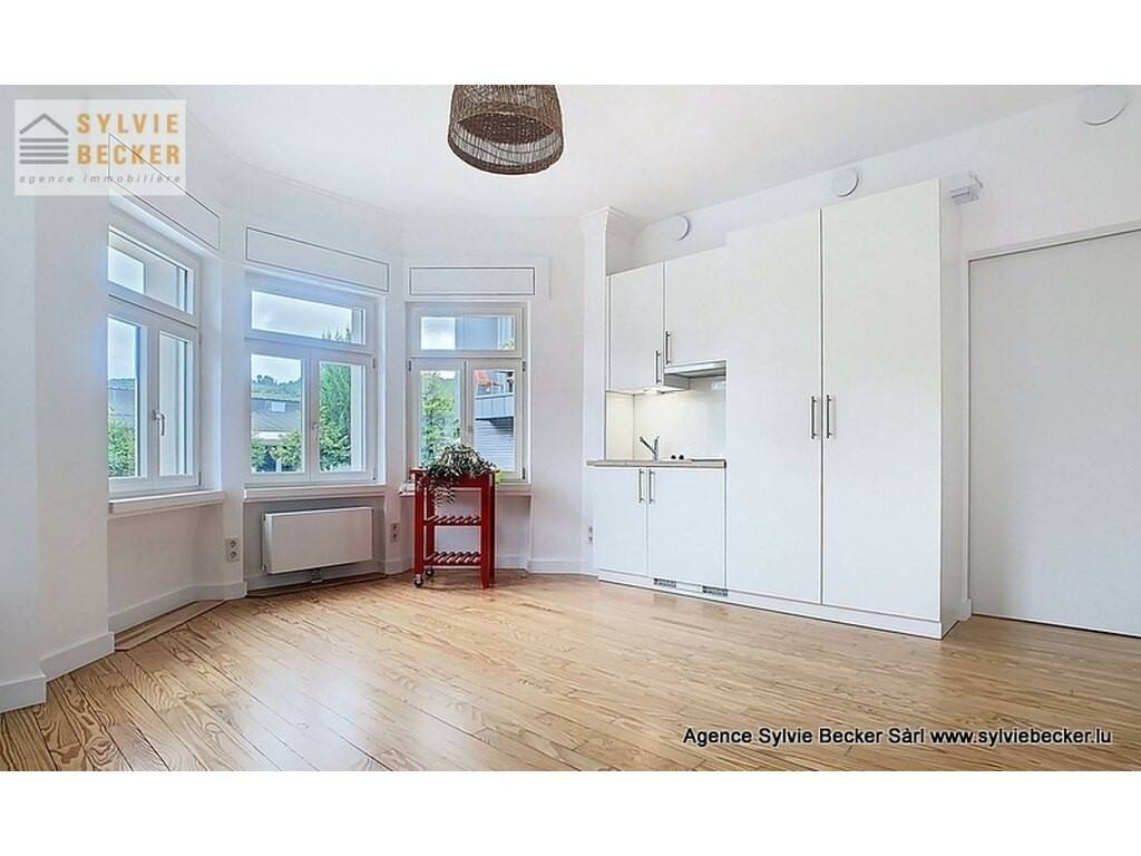 Studio apartment for rent in a renovated old villa (end of 2023) in Lorentzweiler (97, Route de Luxembourg), with large windows and plenty of natural light. It is located on the first floor (with elevator). Residents (13 units) also have access to a terrace, a large garden, and a shared living room, shared by all residents.