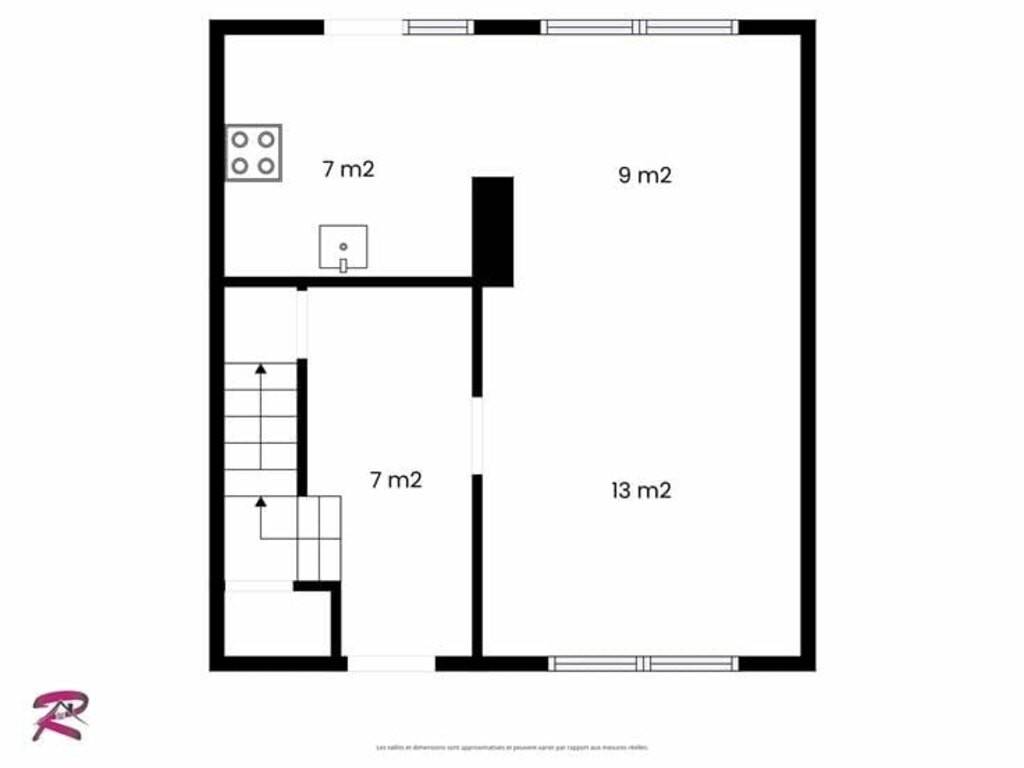 Au rez-de-chaussée : Un hall d'entrée, un séjour, une cuisine équipée (lave-vaisselle, évier, taque, hotte, four, frigo) ;