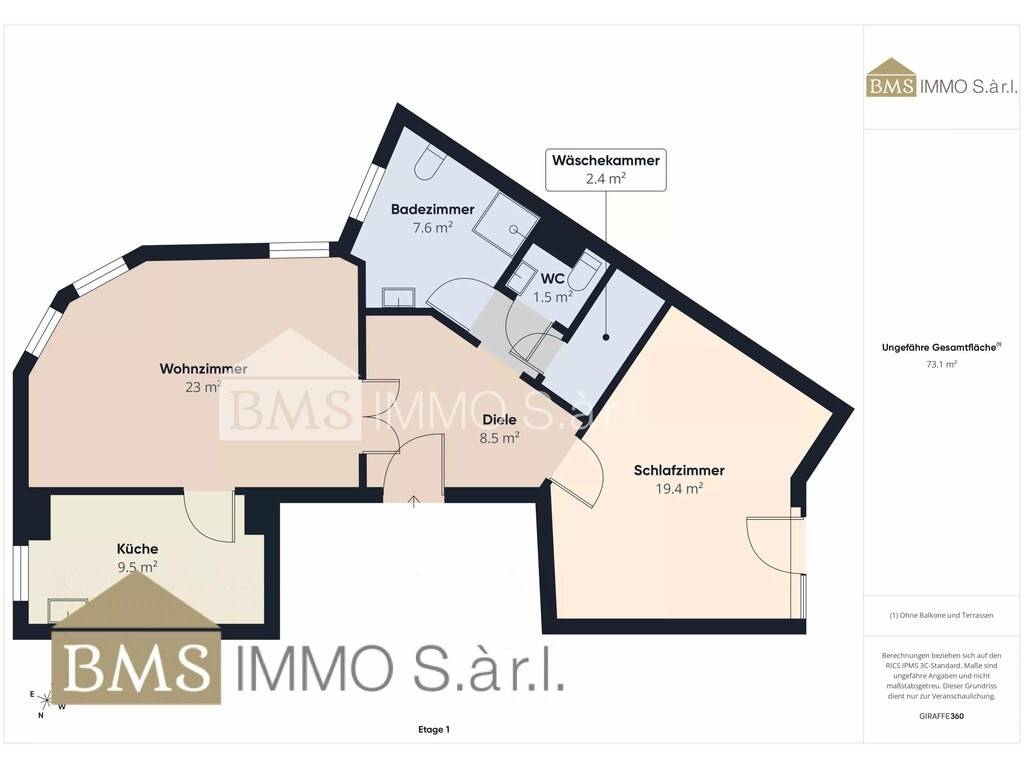 Cet appartement situé au centre d'Echternach offre un cadre de vie agréable sur une surface d'environ 72 m². L'appartement dispose d'une chambre à coucher spacieuse et de pièces à vivre généreusement dimensionnées. Outre le salon lumineux, l'appartement dispose d'une cuisine séparée équipée d'une cuisine intégrée de haute qualité avec tous les appareils électroménagers nécessaires, d'une salle de bain spacieuse avec une douche accessible, d'un WC séparé et d'un débarras pratique avec des raccordements pour la machine à laver et le sèche-linge.