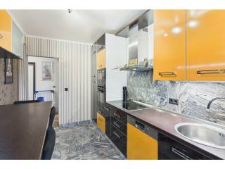 Cuisine moderne et fonctionnelle avec espace snack / coin repas.