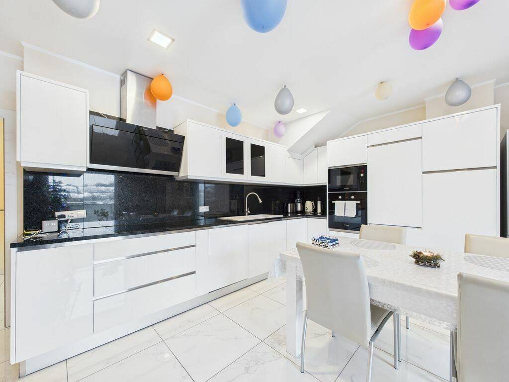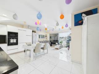 Cuisine équipée ouverte sur un vaste séjour de 32 m², bénéficiant de baies vitrées et d'un accès direct au balcon