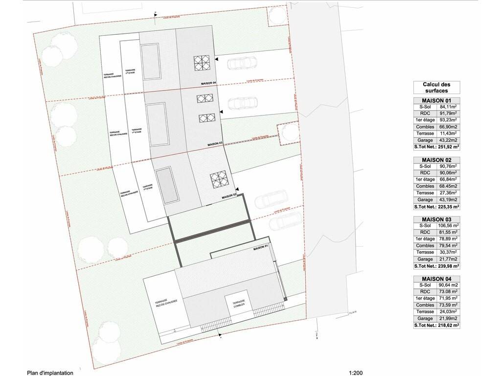 Un projet autorisé est déjà disponible pour la construction de quatre maisons, comprenant :