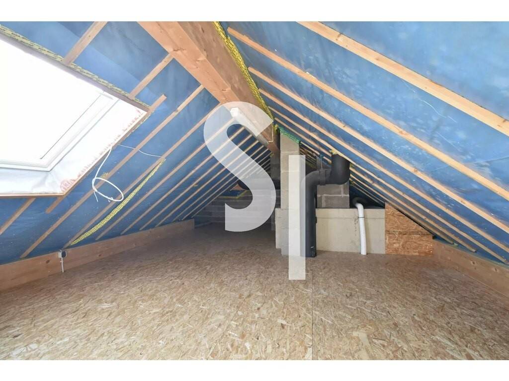• Troisième chambre, plus compacte, non meublée, avec accès direct au grenier offrant un espace complémentaire.