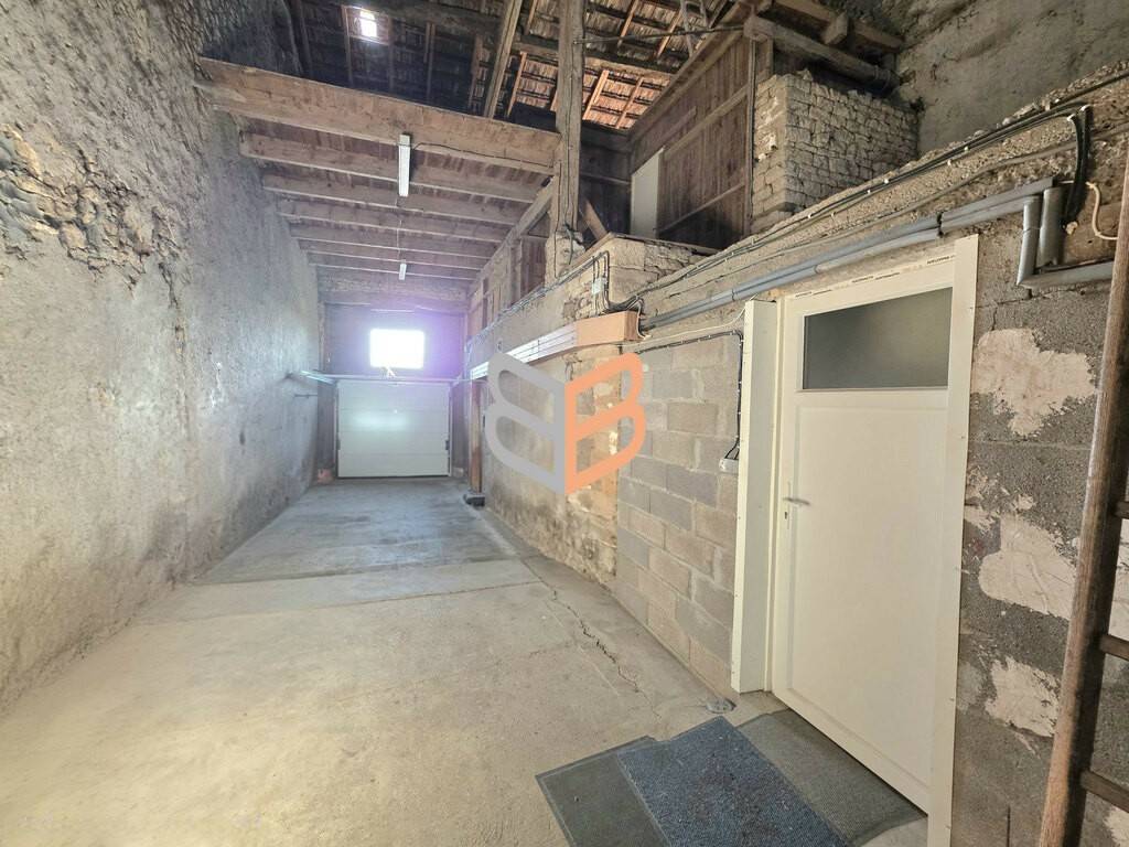Grand garage avec porte motorisée.