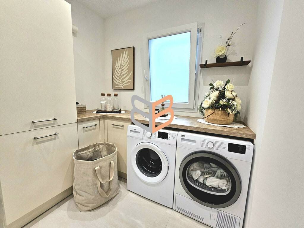 -Une vaste pièce de vie de 57 m2 baignée de lumière avec cuisine équipée et plan de travail en ceramique fine. -La cuisine dispose d’un cellier astucieusement dissimulé derrière des façades identiques aux meubles de cuisine. Cet espace offre des rangements supplémentaires -un toilette -3 chambres: une de 18m2 et 2 de12.5m2. (les lits et dressing restent). -une salle de bain de 10m2 avec douche italienne, meuble vasque et baignoire -une buanderie aménagée (la machine à laver et le sèche linge restent).