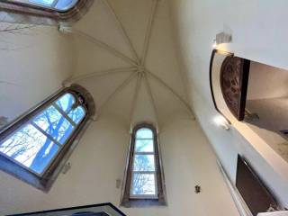 Le coup de cœur assuré ? Le séjour, installé dans l’ancienne chapelle du château, sublimé par une hauteur sous plafond vertigineuse de 7 mètres : un espace unique et spectaculaire.