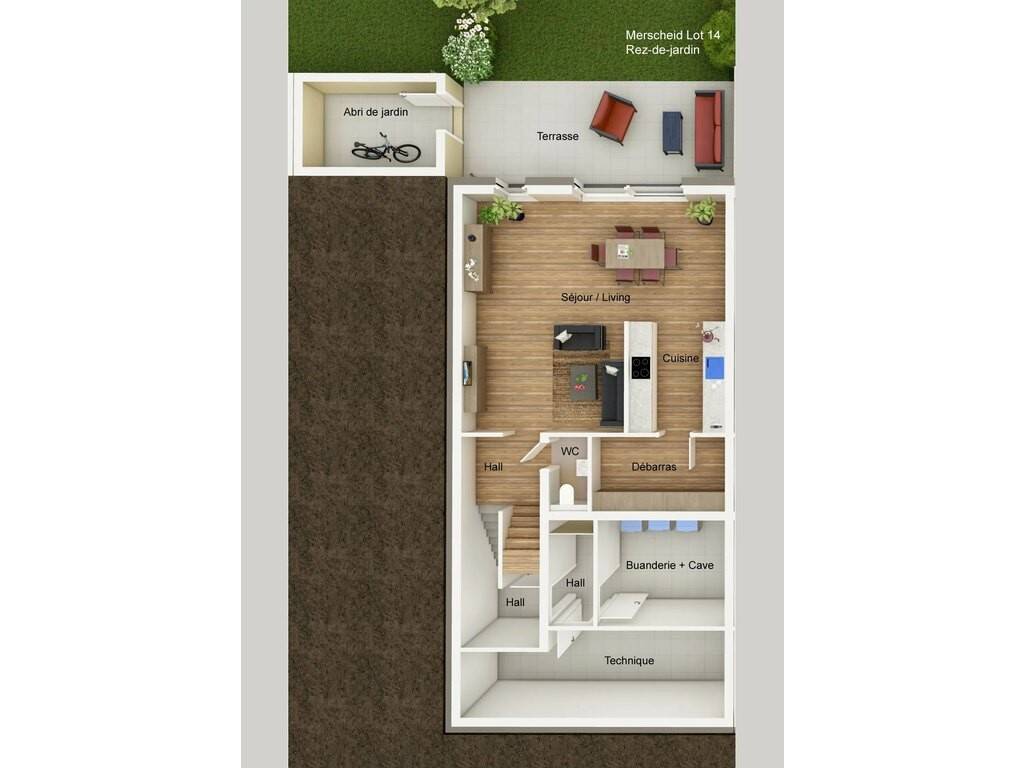 The real estate agency HOME INVEST offers you exclusively a semi-detached house (Lot 14), attached on its right side, with a living area of +/- 136 sqm (total area: +/- 305 sqm), located on a plot of 4 a 83 ca, which is laid out as follows: