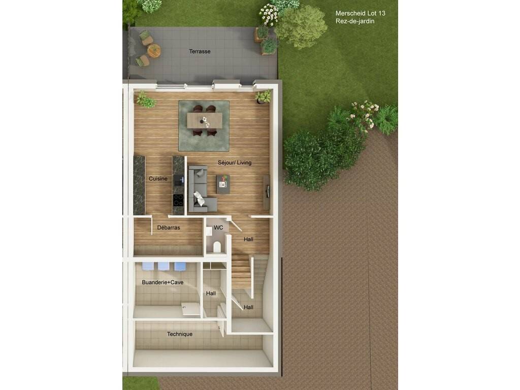 The real estate agency HOME INVEST offers you exclusively a semi-detached house (Lot 13), attached on its left side, with a living area of +/- 137 sqm (total area: +/- 297 sqm), located on a plot of 4 a 66 ca, which is laid out as follows: