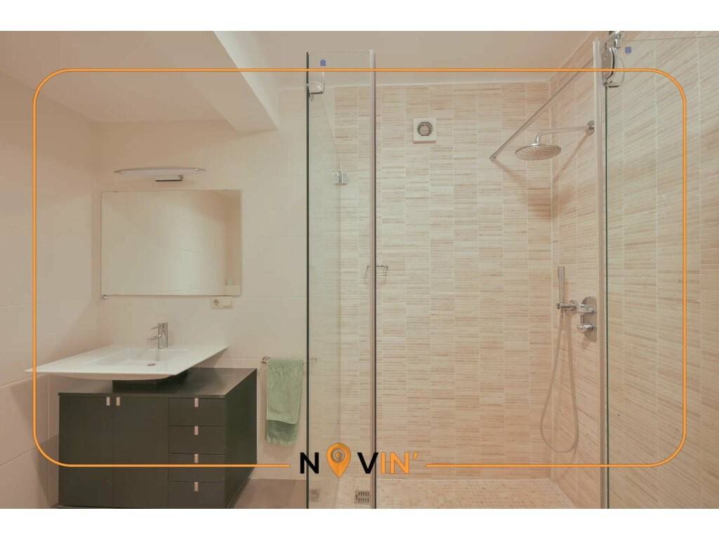 On the first basement level: Dining area, shared kitchen (equipped with an oven, induction cooktop, Nespresso coffee machine, microwave, washing machine, and flat-screen TV), and an additional shower room.