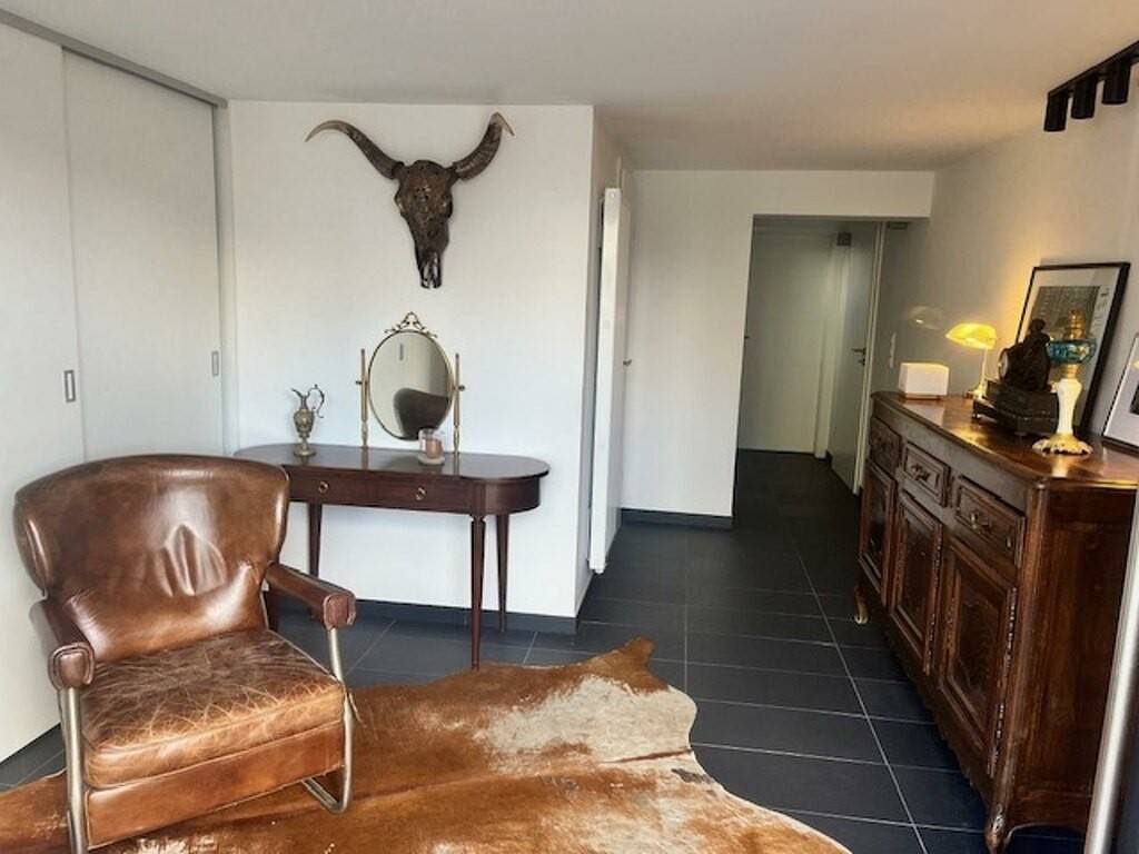 Grand living lumineux avec cuisine ouverte équipée