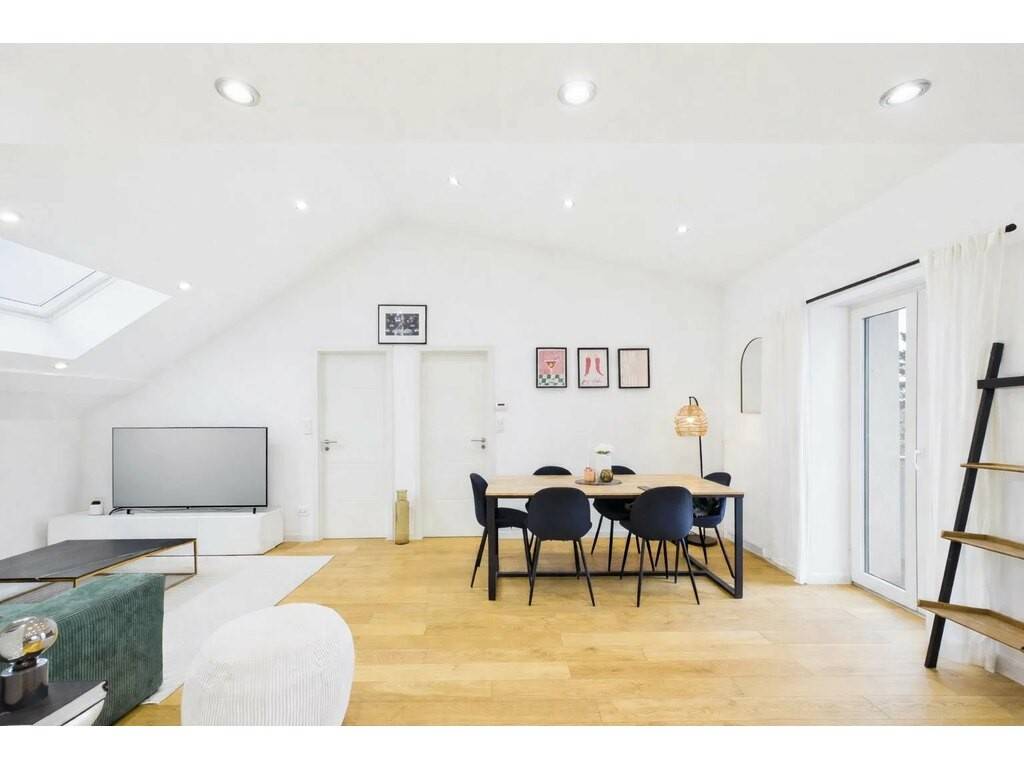 Entrance hall Bright living room with open equipped kitchen – 32 m² 2 bedrooms of approximately 10.2 m² each Fully tiled bathroom with shower – 6.8 m² Separate toilets Spacious dressing room – 9.7 m² South-facing terrace