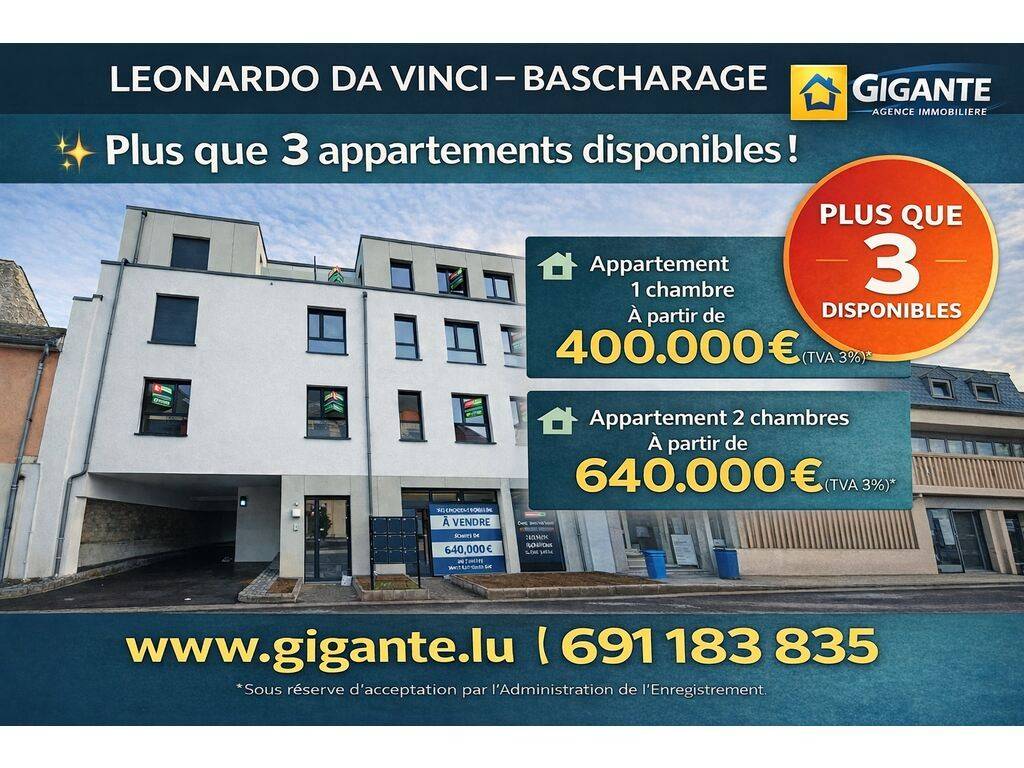 Pour de plus amples renseignements, n'hésitez pas à contacter au numéro 691 183 835 Stefano GIGANTE ou à info@gigante.lu Sale Details - TVA appliquée: 17.00 € - Isolation thermique: A