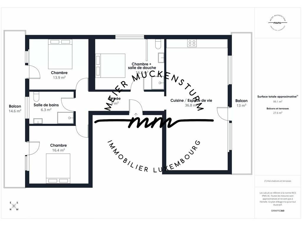 Votre agence immobilière MEIER MUCKENSTURM vous propose à la vente un bel appartement de 3 chambres situé à Pétange.