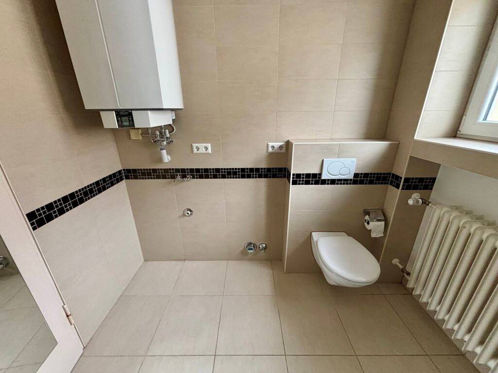 Salle de douche avec WC et raccordements pour machine à laver et sèche-linge