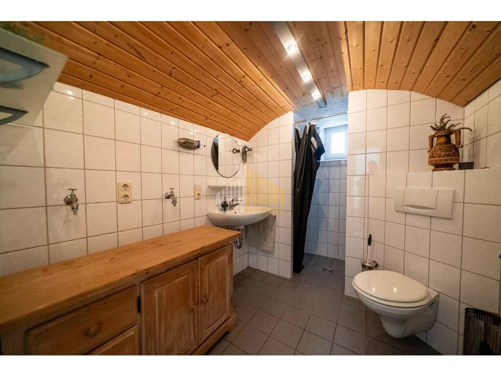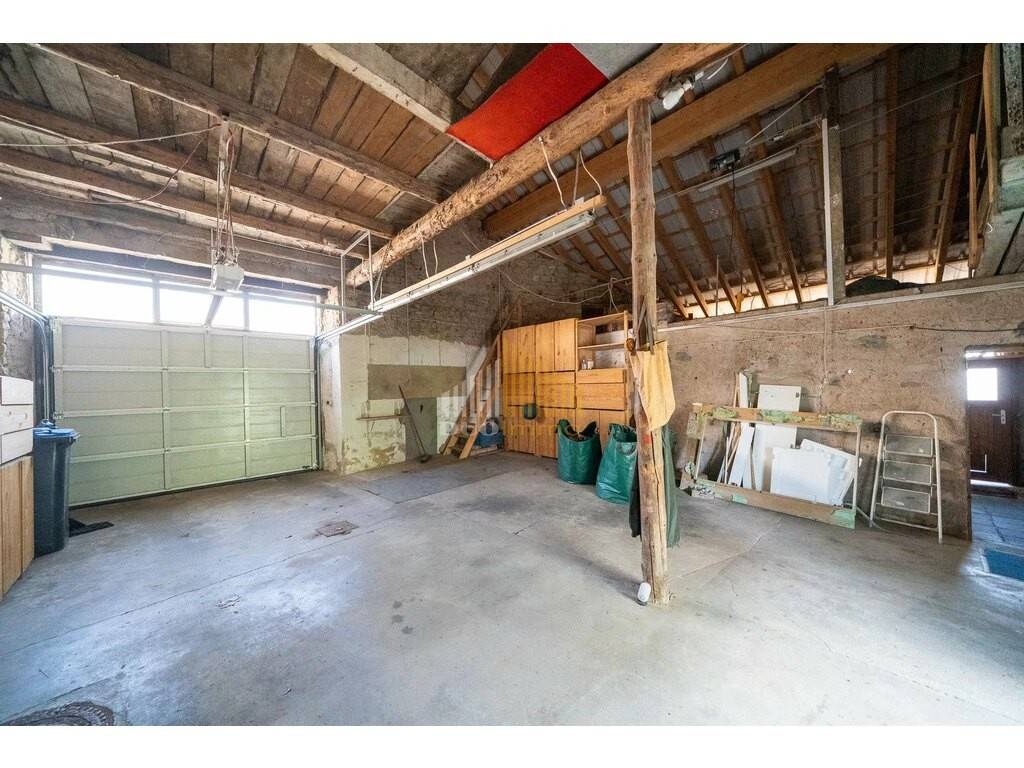 La propriété dispose de fenêtres en PVC à double vitrage datant de 1997, de fenêtres de toit en PVC avec des volets roulants solaires ainsi que de lucarnes de toit élégantes avec de la faïence en pierre. Le toit est recouvert de tuiles en terre cuite noires, tandis que le toit de la grange a été rénové en 2015 avec des panneaux en aluminium durables. La porte de garage a également été modernisée en 2015. La technique de chauffage a été installée en 1997 et partiellement renouvelée en 2009.