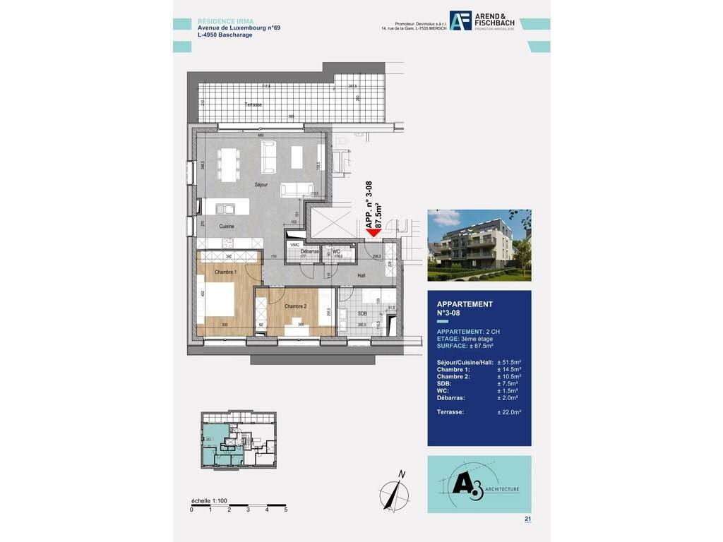 In today's context of sustainable development, energy conservation and high energy prices, we have opted to build our homes to the "NZEB" (Nearly Zero Energy Building) energy standard - amended Grand-Ducal regulation of November 30, 2007 concerning the energy performance of residential buildings. The construction and architectural design, the quality finish and the thermal and sound insulation, all guarantee investors the stability of their capital investment and a guaranteed adequate return.
