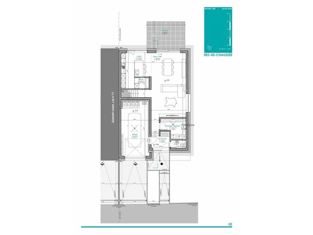 - cuisine spacieuse dans un grand séjour avec accès vers la terrasse de 21,51m2 et son jardin