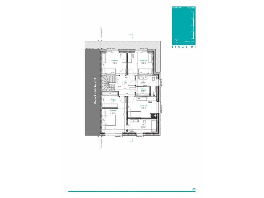 LOT 16: Maison unifamiliale en bande sur un terrain de 5,44 ares avec une surface habitable de +/- 160 m2 et une surface totale de +/-191m2 comprenant: