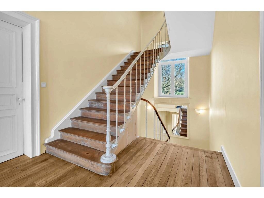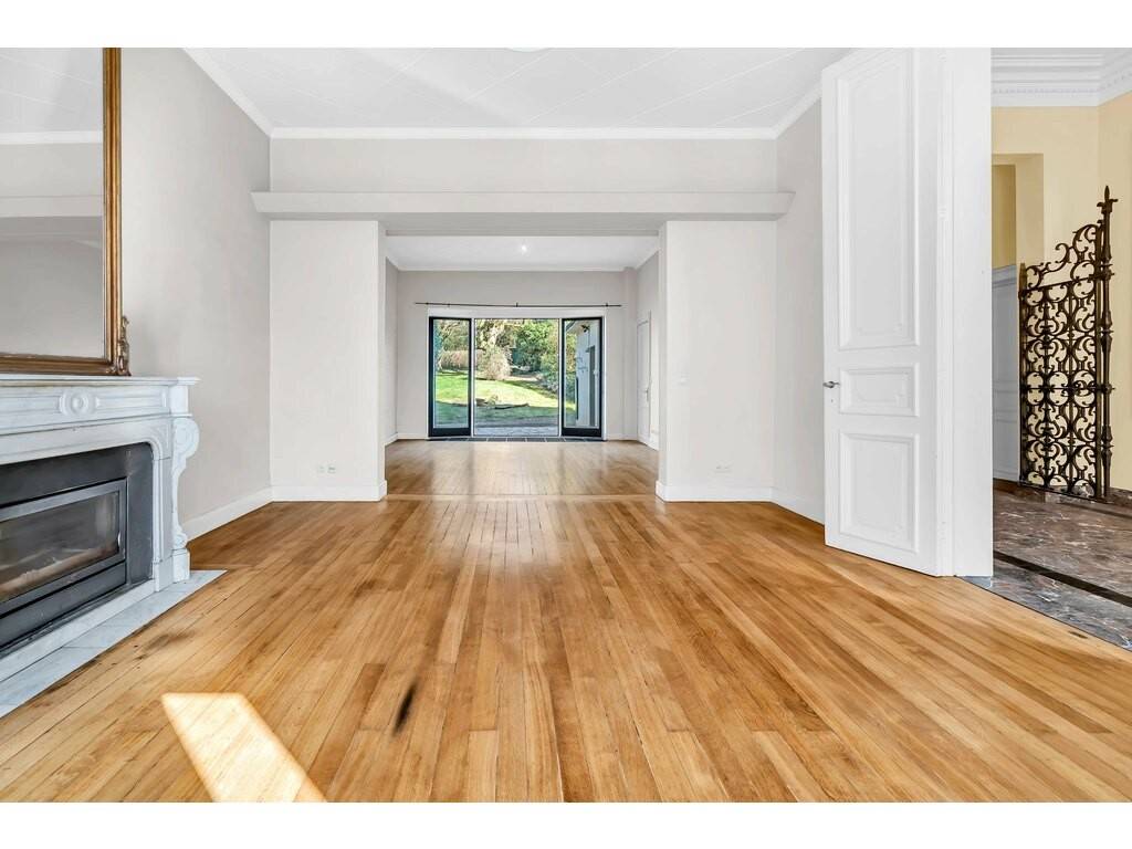 Dès l’entrée, vous serez accueilli par un hall majestueux avec une hauteur sous plafond de 4 mètres, mettant en valeur le caractère et les volumes généreux de la maison. Le rez-de-chaussée se compose d’un double séjour lumineux avec parquet et cheminées en marbre, offrant un accès direct à une terrasse avec vue dégagée sur le jardin arboré. Une cuisine séparée entièrement équipée complète cet espace.