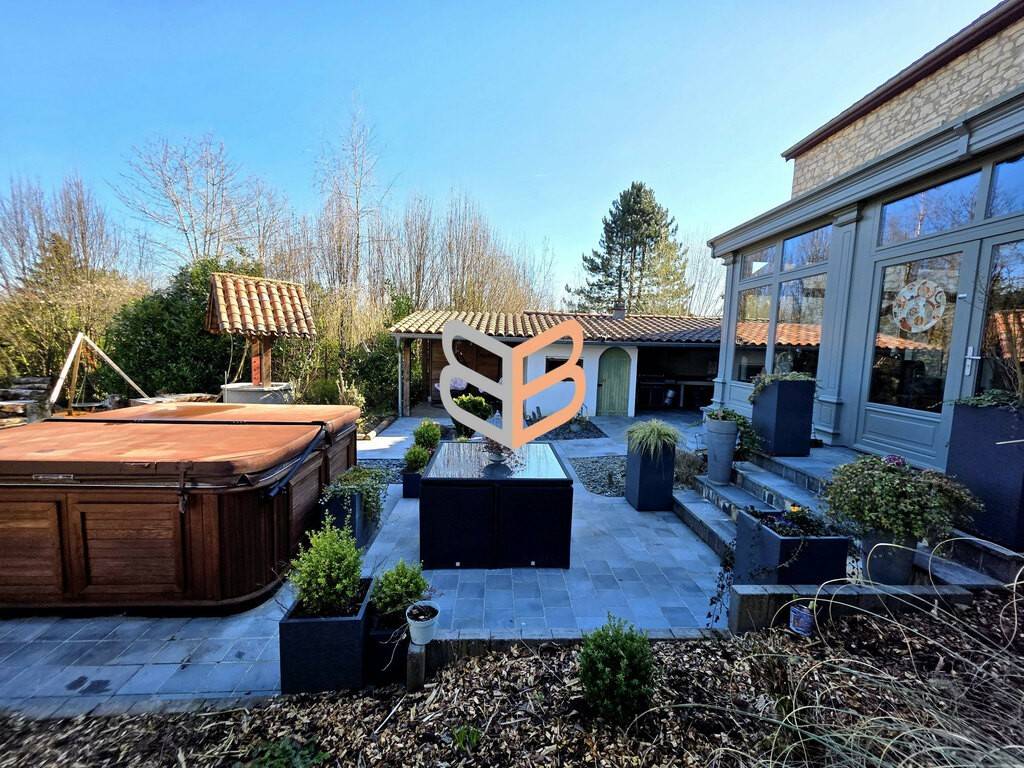 À l’extérieur, vous profiterez d’un jardin arboré de type anglais, parfaitement aménagé, avec jacuzzi, ainsi qu’une annexe comprenant une cuisine d’été et un espace barbecue.