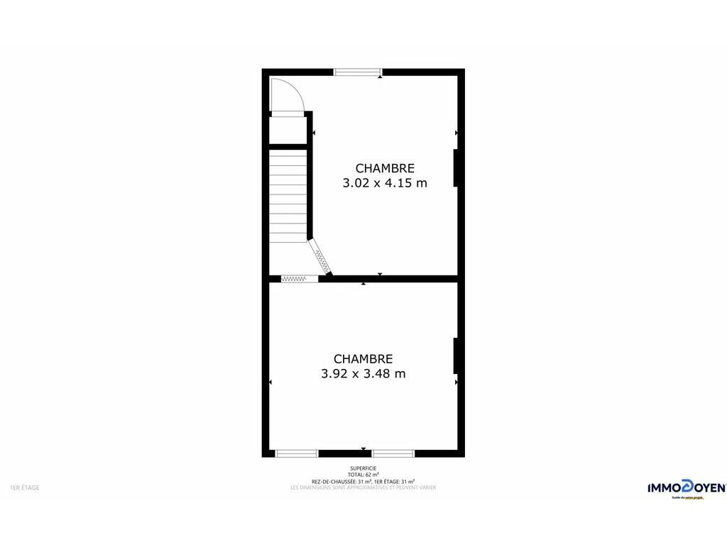 Elle se compose d’un séjour lumineux avec cuisine ouverte, d’une salle de bain a la cave avec douche et WC. AU 1er étagé on retrouve 2 chambres avec possibilité d’aménager le grenier en chambre parentale À l’extérieur, vous profiterez d’un jardin, d’une terrasse. La maison dispose également d’une cave, Des travaux de rénovation sont néanmoins à prévoir : cuisine à remplacer et salle de bain à moderniser,
