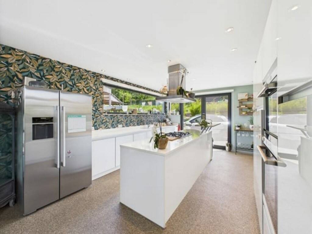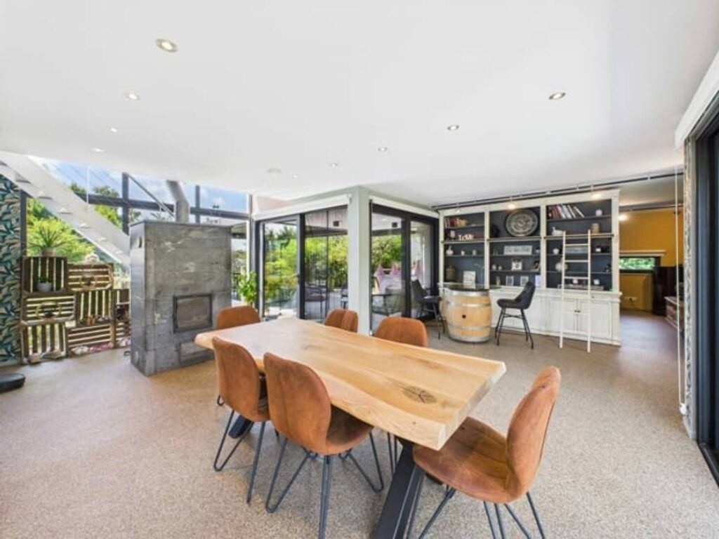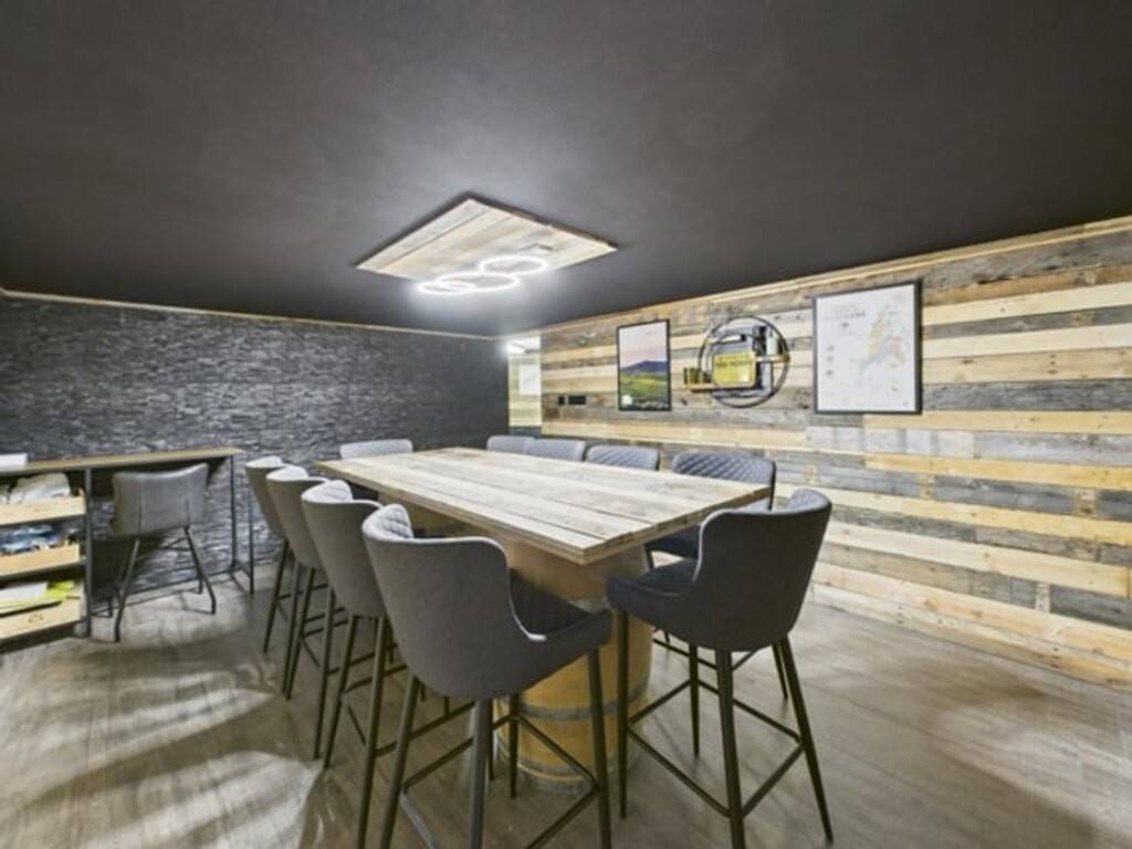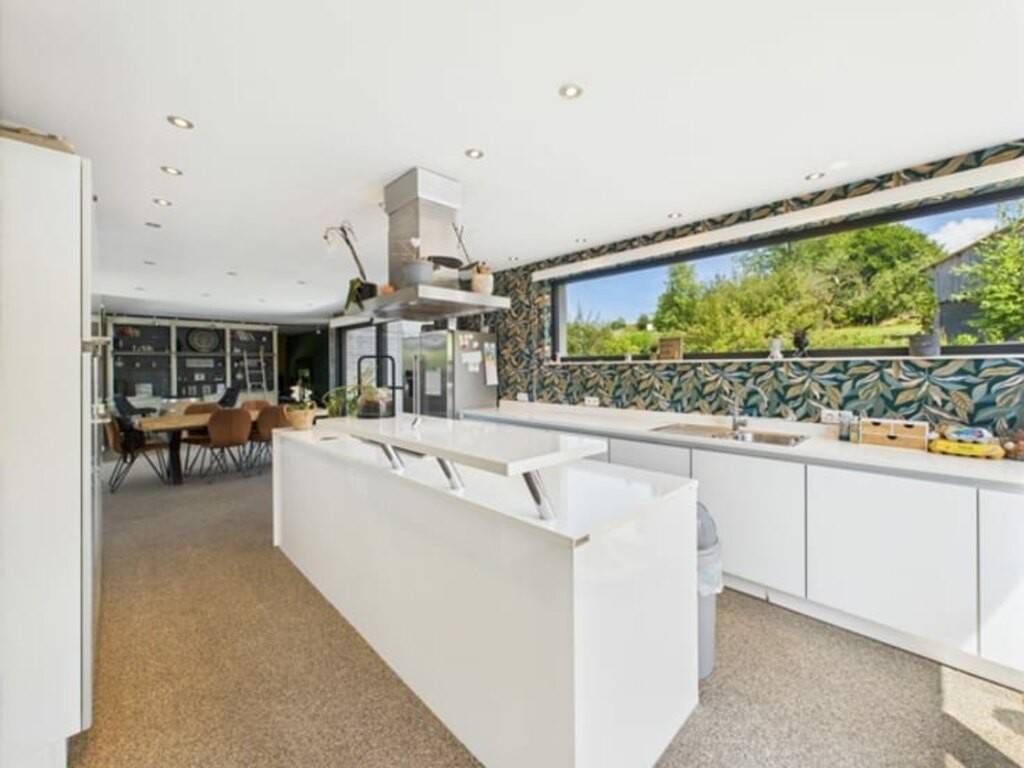 Le rez-de-chaussée comprend une cuisine équipée avec arrière-cuisine, une salle à manger conviviale avec poêle à bois, un salon avec poêle à pellets, une salle de jeux, un bureau et une vaste véranda ouvrable avec barbecue intégré. Une pièce supplémentaire peut servir à une activité professionnelle.
